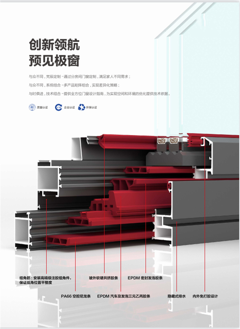 断桥铝又叫隔热断桥铝型材,其比普通的铝合金型材有着更优异的隔热性能。而系统窗之所以受捧,其原因之一就是打造舒适的家居生活环境,无疑“无疑冬暖夏凉”就是系统窗需达到的。目前,在行业内系统窗户都是以断桥铝为主,逐渐演变出断桥铝结构更加严谨,要求在同一等温线上,其隔热效果更为突出。